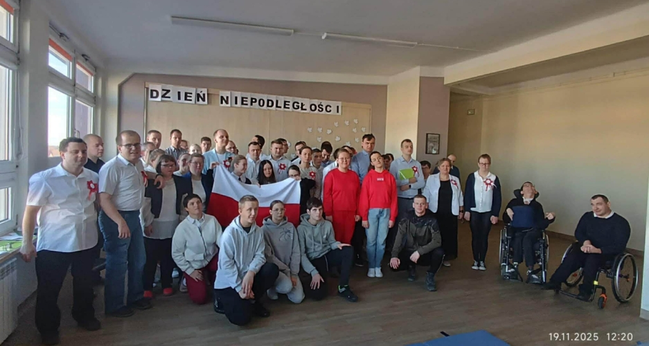 Goszczący w ZS nr 2 w Łukowie w ubiegłym tygodniu uczestnicy Warsztatów Terapii Zajęciowej zrewanżowali się zaproszeniem dla uczniów kl. II BB/ BC, z którymi zawarli znajomość podczas wspólnego przygotowywania słodkości w szkolnej pracowni gastronomicznej. 19 listopada 2025 r. nasza młodzież obejrzała przedstawienie z okazji Święta Odzyskania Niepodległości przygotowane przez uczestników WTZ. Występujący wykazali się dużymi talentami artystycznymi recytując wiersze i śpiewając, z akompaniamentem gitary, pieśni patriotyczne. Gospodarze przygotowali też słodki poczęstunek. Wizyta w siedzibie Warsztatów Terapii Zajęciowej była dla uczniów klasy integracyjnej doskonałą okazją do zapoznania się z działalnością tej instytucji, zasadami jej funkcjonowania oraz podziwiania prac powstających w poszczególnych pracowniach. Serdecznie dziękujemy za zaproszenie i pozostajemy z nadzieją na dalszą współpracę. Opiekę nad uczniami sprawowała p. Katarzyna Jastrzębska.