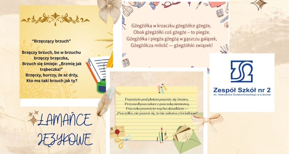 Z okazji Międzynarodowego Dnia Łamańców Językowych w naszej szkole odbył się konkurs na stworzenie autorskiego łamańca językowego. Celem przedsięwzięcia było rozwijanie kreatywności językowej uczniów i doskonalenie poprawnej wymowy. Uczniowie wykazali się pomysłowością, tworząc oryginalne i często trudne do wymówienia teksty. Komisja konkursowa miała niełatwe zadanie w wyborze najlepszych prac. Serdecznie gratulujemy wszystkim uczestnikom konkursu kreatywności i odwagi w podejmowaniu językowych wyzwań!