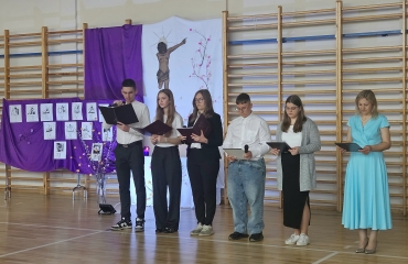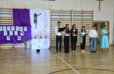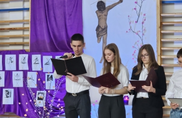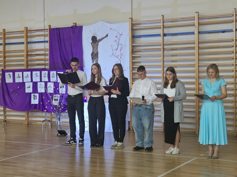 1 kwietnia 2026 r. w naszej szkole odbył się apel wielkanocny pt. „Mój Chrystus Połamany”. Uczniowie wykonali montaż słowno-muzyczny oparty na historii hiszpańskiego ojca jezuity - Romana Cue Romano. Ta opowieść skłoniła całą społeczność szkolną do refleksji nad wartościami i wprowadziła w świąteczny nastrój.