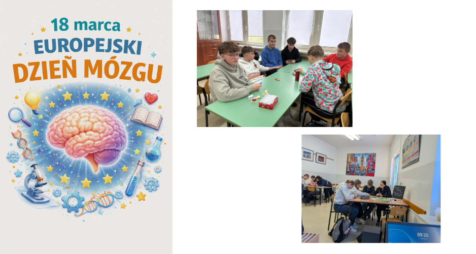 18 marca obchodziliśmy Europejski Dzień Mózgu. Celem obchodów było zwrócenie uwagi na niezwykle ważną funkcję tego organu. Aby zachować zdrowie należy: prawidłowo się odżywiać, dbać o codzienny wysiłek fizyczny, czytać książki, rozwiązywać krzyżówki, grać w gry logiczne, zadbać o regularny sen oraz relaks. W naszej szkole uczniowie grali w gry stolikowe, rozwiązywali logiczne łamigłówki, zagadki, szyfry i rebusy. Wszystkim uczniom dziękujemy za zaangażowanie i zachęcamy do naśladowania.
