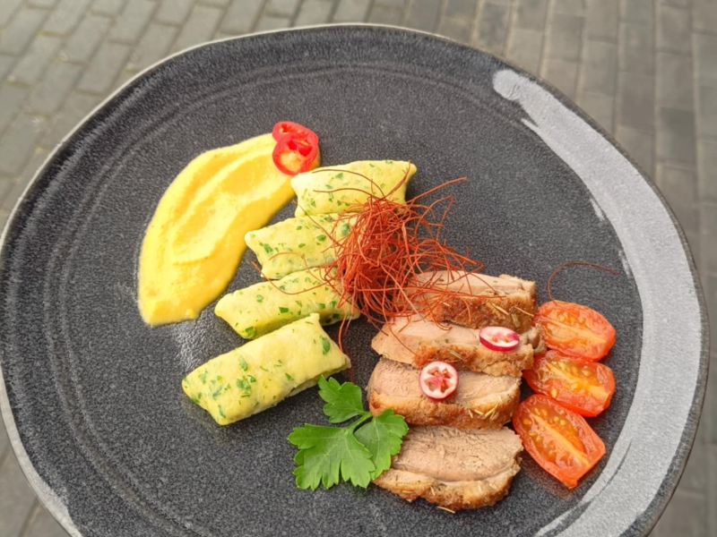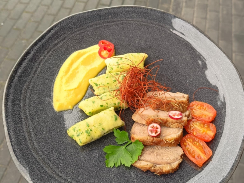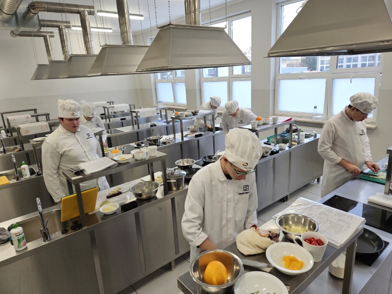W ramach zajęć praktycznych odbyły się warsztaty kulinarne z udziałem uczniów kształcących się w zawodzie kucharz. Główną rolę odegrała pierś z kaczki w autorskiej odsłonie. Uczniowie przygotowali danie składające się z soczystej piersi z kaczki podanej z sosem pomarańczowo-brzoskwiniowym z nutą imbiru oraz kopytkami pietruszkowymi.