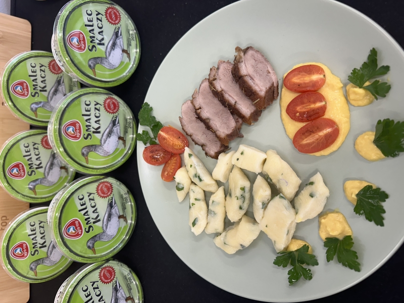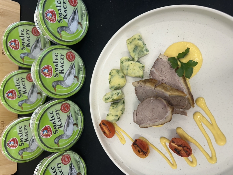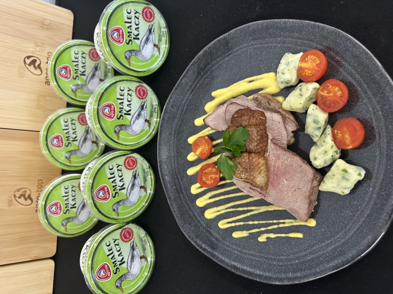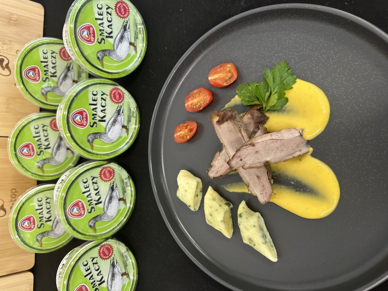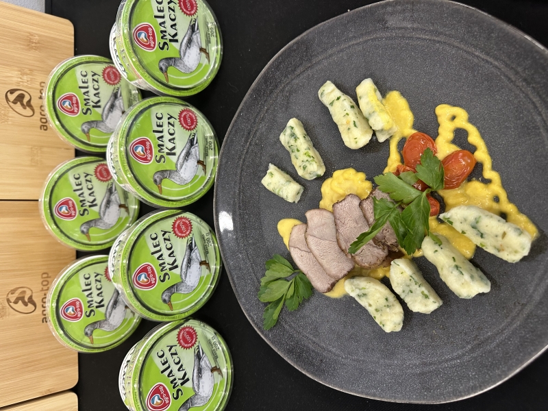 Podczas warsztatów szczególną uwagę zwrócono na jakość i pochodzenie produktów. Wykorzystano smalec kaczy pozyskany od lokalnego producenta – marki Agro-Top, który nadał potrawom wyjątkowej głębi smaku.