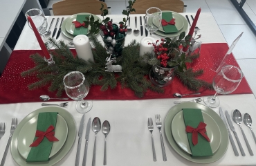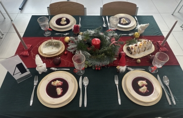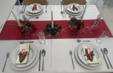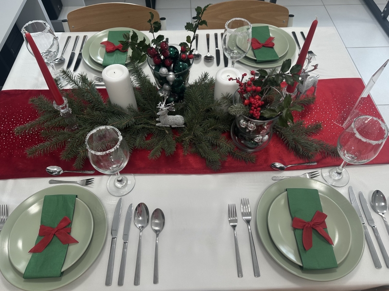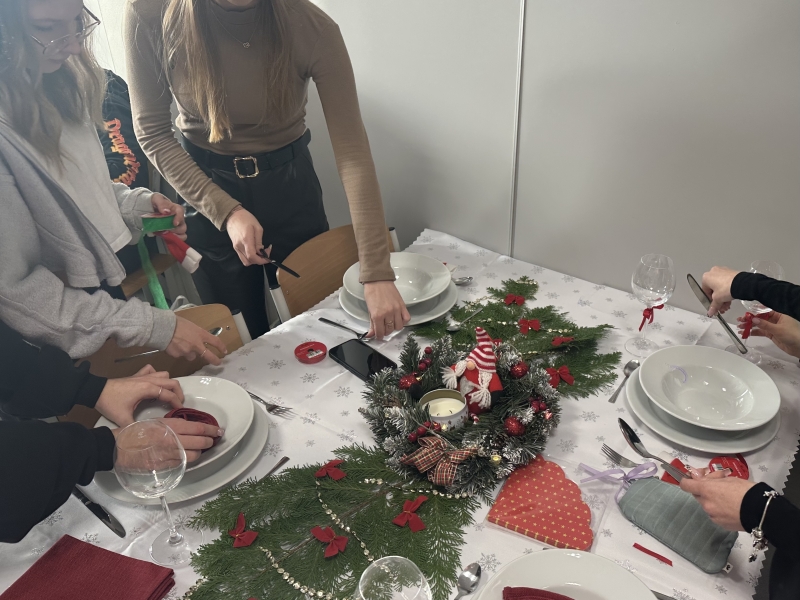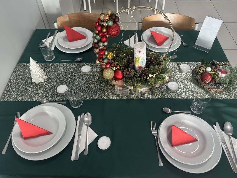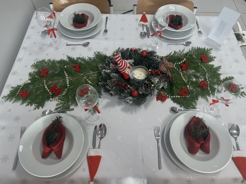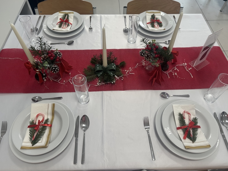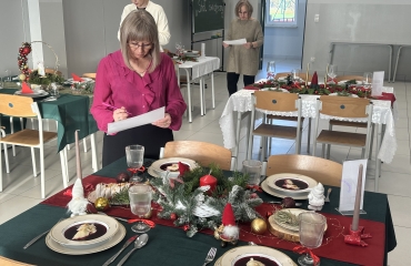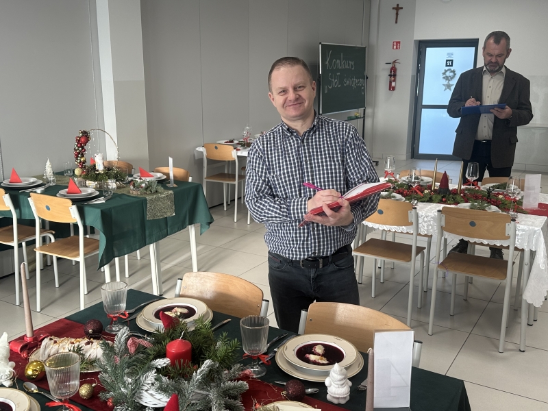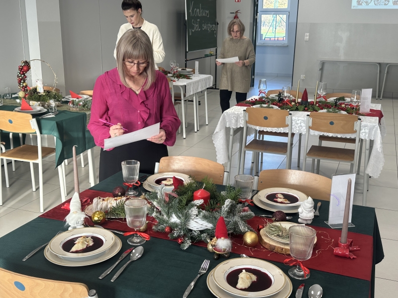 W dniu 16 grudnia 2025 roku w naszej szkole odbył się konkurs na najładniejsze świąteczne nakrycie stołu, którego celem było rozwijanie kreatywności, estetyki oraz umiejętności pracy zespołowej wśród uczniów. W konkursie wzięło udział 7 ekip reprezentujących klasy technikum, które wykonały własne aranżacje świątecznych stołów. Prace zachwycały pomysłowością, dbałością o detale, spójnością kompozycji oraz nawiązaniem do tradycji świątecznych. Komisja konkursowa oceniała m.in. estetykę wykonania, oryginalność pomysłu oraz zgodność z tematyką świąteczną. Po burzliwych obradach wyłoniono laureatów konkursu: I miejsce zajęła klasa IV TH ( Marlena Borkowska, Anna Dębińska, Małgorzata Kaźmierczak, Natalia Kwiatkowska, Maja Szałkowska. II miejsce przypadło zespołowi z klasy II TEH - Alicja Szumlewicz, Wiktoria Błażejak, Regina Mościcka, Oliwia Witwicka, III miejsce zajęli reprezentanci z klasy I TŻ ( Lena Świętochowska, Julia Szmulik, Kornelia Stefaniak, Aleksander Galiński, Martyna Leszkowicz. Nagrodę publiczności jednogłośnie przyznano zespołowi z klasy IV TH. Serdecznie gratulujemy wszystkim uczestnikom, dziękujemy za zaangażowanie i wysoki poziom prezentowanych prac. Pomysłodawczyniami konkursu były panie Monika Jankowska i Anna Przeździak.