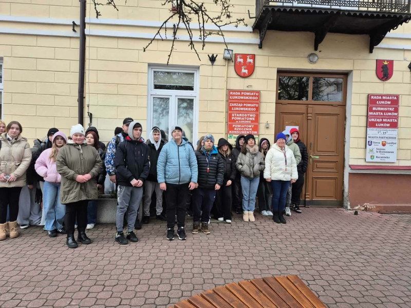 W dniu 28.11.2025 r. uczniowie klas 2BA i 2BB pod opieką Pani Katarzyny Świderskiej i Pani Marzeny Nurzyńskiej-Pycka uczestniczyli w wyjściu edukacyjnym do Starostwa Powiatowego oraz Urzędu Miasta Łuków. Podczas wizyty uczniowie spotkali się z przedstawicielami władz miasta i powiatu, którzy omówili strukturę organizacyjną urzędów, zakres ich kompetencji oraz zadania realizowane na rzecz mieszkańców. Młodzież miała również możliwość zadawania pytań dotyczących funkcjonowania samorządu powiatowego i miejskiego, inwestycji oraz codziennej pracy urzędników. Uczniowie zwiedzili wybrane wydziały i zapoznali się z ich działalnością. Wyjście stanowiło cenną lekcję praktycznej edukacji obywatelskiej, umożliwiając uczniom bezpośredni kontakt z samorządem oraz lepsze zrozumienie mechanizmów funkcjonowania władz lokalnych. Dziękujemy Powiat Łukowski i Miasto Łuków.