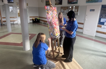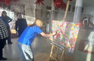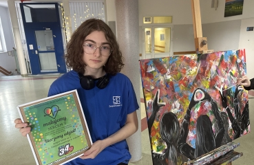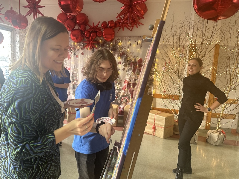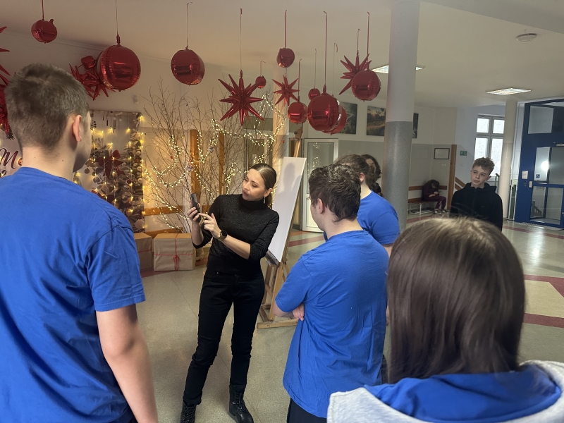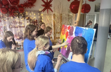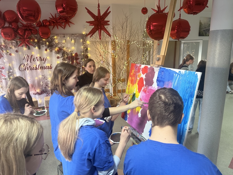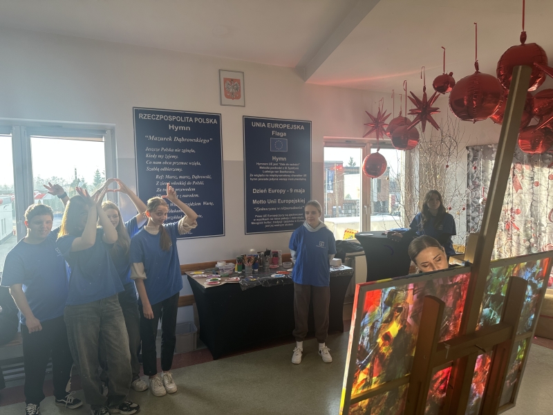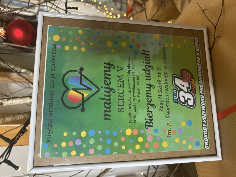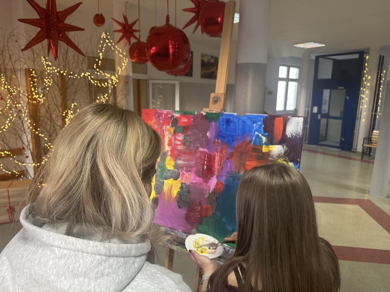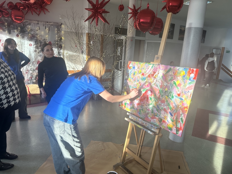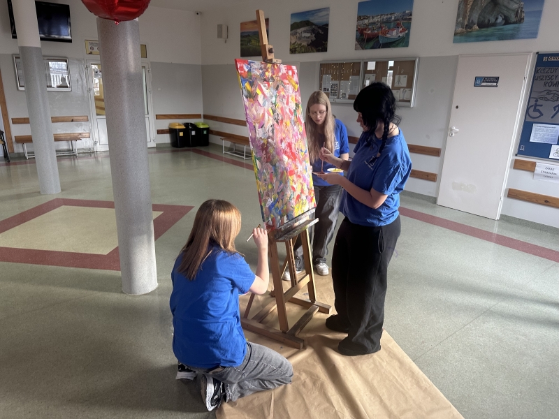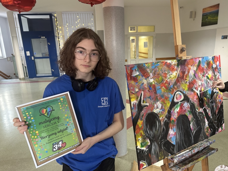 W dniu 17 grudnia odbyło się wydarzenie podsumowujące proces tworzenia wspólnego obrazu przez młodzież we współpracy z lokalną artystką, panią Elwirą Sosnowską. Działanie zostało zrealizowane w ramach międzynarodowej Akcji Społecznej „Malujemy Sercem dla WOŚP”, której celem jest promowanie empatii, zaangażowania społecznego oraz wspieranie działań Wielkiej Orkiestry Świątecznej Pomocy poprzez sztukę.