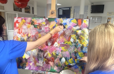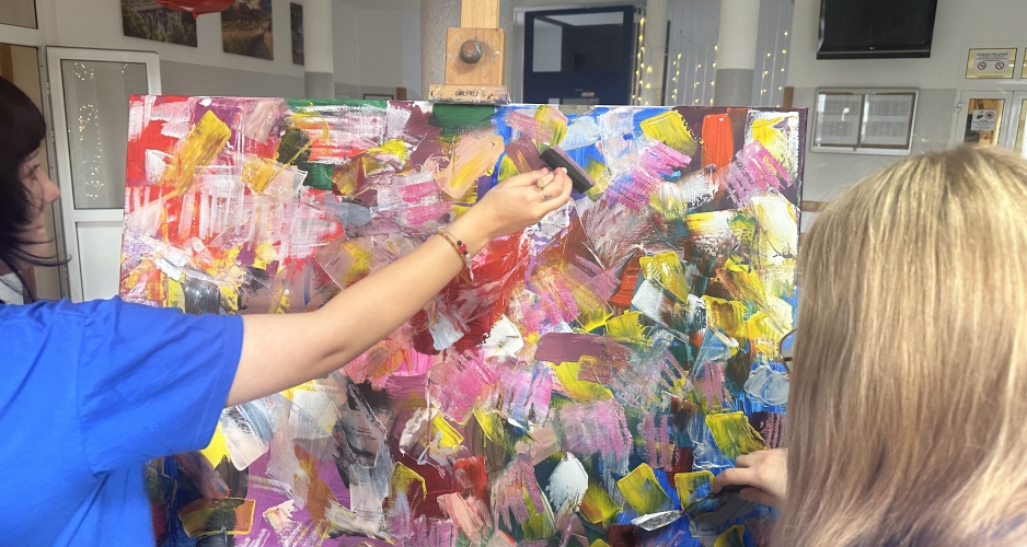 Podczas spotkań warsztatowych młodzi uczestnicy mieli okazję pracować pod okiem artystki, poznając podstawy twórczego wyrazu, współpracy zespołowej oraz znaczenie sztuki jako narzędzia komunikacji i niesienia dobra. Kulminacyjnym efektem wspólnej pracy było powstanie obrazu, który stał się symbolem solidarności, wrażliwości i otwartości na potrzeby innych.