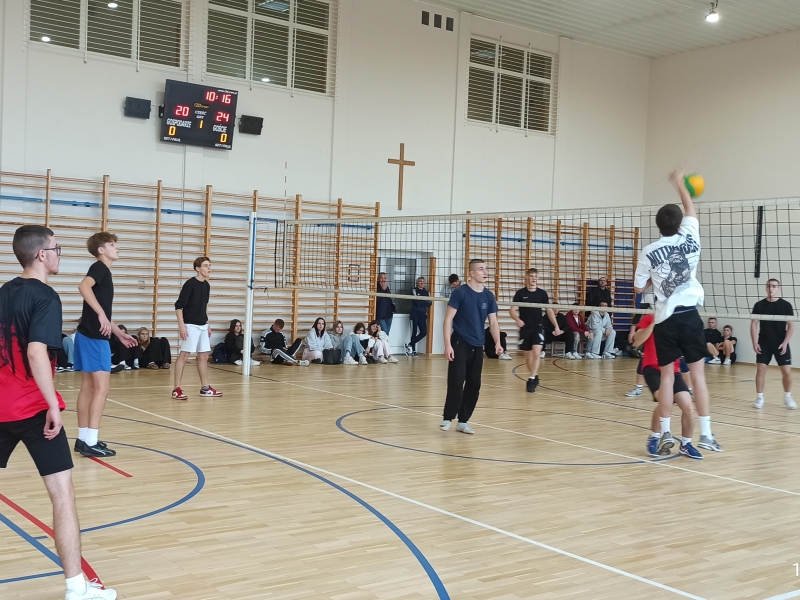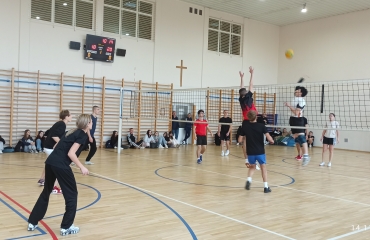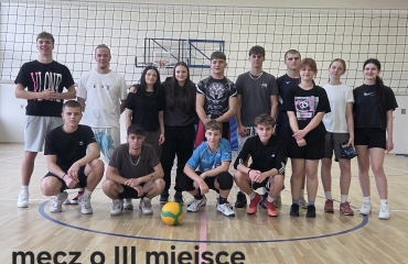 Międzyklasowy Turniej Siatkówki Dziewcząt i Chłopców, w rozgrywkach wzięło udział siedem drużyn, mecze rozgrywane były w dwóch grupach, do dwóch wygranych setów, systemem każdy z każdym, awans do półfinałów uzyskały cztery zespoły, spośród których zostali wyłonieni zwycięzcy.Grupa A:kl. V TEŻ,TH, II BB: Włodarczyk Ewa, Kleszcz Kamila, Konieczny Łukasz, Ambroziak Klaudiusz, Mucha Michał, Franczak Kacper, Wylotek Mateusz, Nowicka Maja kl. IV TEK,TŻB: Łazuga Paweł, Świętoński Antoni, Zalewski Mateusz, Skwara Jan, Sobiech Dawid, Hutnik Kamil, Danielak Szymon, Lionchuk Andrii, Mojzych Gabriela, Siwiec Julia kl. III TŻ,TH,TE, II TŻ: Ostapenko Pavlo, Krawczyk Seweryn, Królikowski Filip, Izdebska Martyna, Kępka Amelia, Gomółka Mikołaj, Wereszczyński Kacper, Szczygielski Krzysztof, Matusik Kacper, Sadło Jakub kl. III BABC: Proch Kamil, Kępka Przemysław, Grzywacz Kacper, Adamczyk Mikołaj, Wilczyński Jan, Denis Jakub, Przybysz Aleksandra, Roguski Piotr, Oshivska Julia, Oshivska NataliaGrupa B:kl. II BACD, I BC: Mazurek Magdalena, Osińska Angelika, Czubaszek Mateusz, Fredo Michał, Krasuski Adam, Kozarski Adrian, Szczuchniak Adrian, Gregorowicz Marcel, Machniak Anna kl. II TEH, II BD, I BA: Szumlewicz Alicja, Mościcka Regina, Łuckiewicz Bartosz, Pożarowski Wiktor, Machniak Amelia, Okuń Filip, Kot Jakub, Jaworski Piotr, Śledź Krystian kl. I TŻ, I TH: Jabłońska Alicja, Gomółka Amelia, Rosińska Diana, Muszyńska Maja, Leszkowicz Martyna, Łukaszewski Michał, Filip Jakub, Nowak Patryk, Nurzyński AlanELIMINACJE: A V TEŻ,TH II BB IV TEK,TŻB III TŻ,TH,TE II TŻ III BABC pkt kl. V TEŻ,TH, II BB X 0:2 0:2 DSQ 0 kl. IV TEK,TŻB 2:0 X 2:0 2:1 8 kl. III TŻ,TH,TE, II TŻ 2:0 0:2 X 2:1 5 kl. III BABC 2:0 1:2 1:2 X 5 B II BACD I BC II TEH II BD I BA I TŻ,TH pkt kl. II BACD, I BC X 2:0 2:1 5 kl. II TEH, II BD, I BA 0:2 X 0:2 0 kl. I TŻ,TH 1:2 2:0 X 4 PÓŁFINAŁ: kl. II BACD, I BC - kl. III TŻ,TH,TE, II TŻ 0:2 (12:25, 21:25) kl. I TŻ,TH - kl. IV TEK,TŻB 0:2 (14:25, 21:25) FINAŁ: Mecz o III miejsce kl. II BACD, I BC - kl. I TŻ,TH 0:2 (15:25, 21:25) Mecz o I miejsce kl. IV TEK, TŻB - kl. III TŻ,TH,TE, II TŻ 2:1 (25:21, 17:25, 15:11) KLASYFIKACJA KOŃCOWA:I miejsce kl. IV TEK, TŻB I miejsce kl. III TŻ,TH,TE, II TŻ III miejsce kl. I TŻ,TH Najlepsza zawodniczka: Gabriela Mojzych Najlepiej zagrywająca zawodniczka: Martyna Izdebska Najlepszy zawodnik: Pavlo OstapenkoGratulacje dla zwycięzców, podziękowania dla wszystkich drużyn, za mobilizację, chęci i sportową rywalizację, grę fair play. Organizator turnieju: Monika Madej