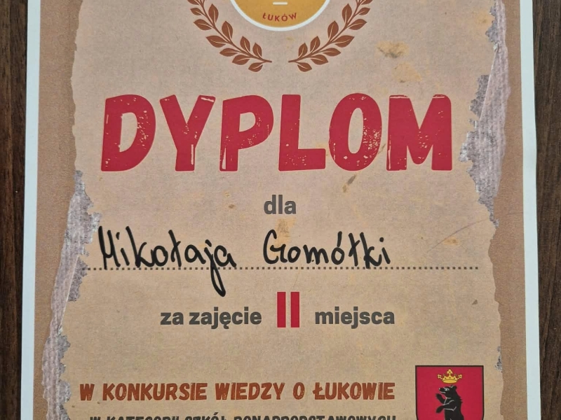 Celem konkursu było poszerzanie wiedzy o historii, kulturze oraz najważniejszych wydarzeniach i miejscach związanych z Łukowem, a także rozwijanie zainteresowania „małą ojczyzną” wśród młodzieży. Uczestnicy musieli wykazać się znajomością faktów historycznych, zabytków, postaci związanych z miastem oraz współczesnego życia Łukowa. Uczniowie ZS nr 2 zaprezentowali wysoki poziom wiedzy i zaangażowania. Na szczególne wyróżnienie zasługuje Mikołaj Gomółka, który zdobył II miejsce osiągając bardzo dobry wynik i godnie reprezentując szkołę.