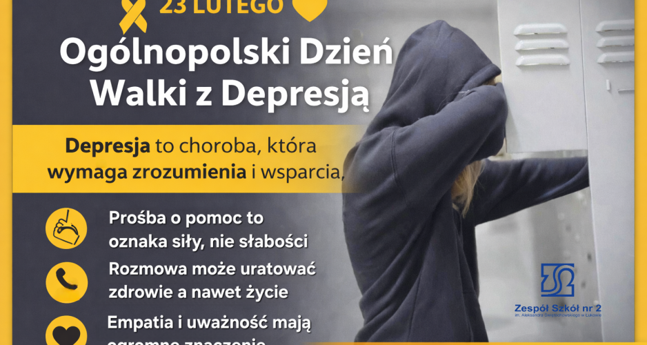 23 lutego – w Ogólnopolski Dzień Walki z Depresją – zatrzymajmy się na chwilę, by okazać wsparcie, zrozumienie i empatię. Depresja to nie „gorszy dzień” ani „chwilowy smutek”. To choroba, która może dotknąć każdego – niezależnie od wieku, płci czy sytuacji życiowej. W Polsce z jej objawami mierzą się miliony osób. To realne wyzwanie, które wymaga rozmowy, leczenia i wsparcia. Dziś przypominamy: prośba o pomoc to oznaka siły, nie słabości, rozmowa może uratować życie, empatia i uważność mają ogromne znaczenie. Jeśli Ty lub ktoś z Twoich bliskich potrzebuje wsparcia – nie bój się sięgnąć po pomoc specjalisty. Psycholog, psychiatra czy telefon zaufania to pierwszy krok ku lepszemu samopoczuciu. Bądźmy dla siebie dobrzy. Czasem jedno „Jak się czujesz?” może znaczyć więcej, niż myślisz.