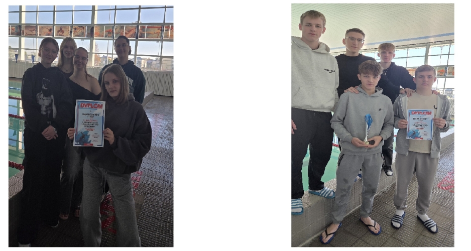 Sztafeta chłopców 6x25 metrów w składzie: Antoni Świętoński IV TE, Wiktor Wachowiec IV TE, Paweł Łazuga IV TE, Kacper Franczak V TE, Krzysztof Szczygielski III TE, Michał Fredo II BC, Michał Mucha V TE, również na podium, III miejsce, czas 1:43.34