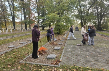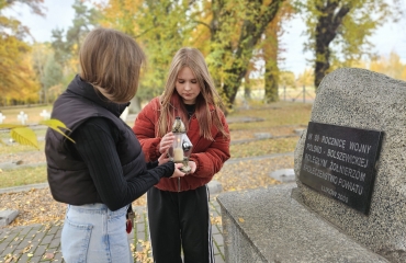 Już od przeszło 25 lat społeczność Zespołu Szkół nr 2 opiekuje się Cmentarzem Wojennym przy ul. Strzelniczej. To nie tylko tradycja, ale także ważna lekcja historii i patriotyzmu, którą starsze pokolenia przekazują młodszym. Każdego roku uczniowie wraz z nauczycielami odwiedzają to miejsce, porządkują groby, zapalają znicze i oddają hołd poległym żołnierzom. W ten sposób pielęgnują pamięć o tych, którzy oddali życie za wolność Ojczyzny. Dziękujemy wszystkim, którzy przez lata z sercem i zaangażowaniem włączają się w tę piękną inicjatywę. Taka postawa jest dowodem na to, że patriotyzm wyraża się nie tylko w słowach, lecz przede wszystkim w czynach. Za wsparcie naszej inicjatywy dziękujemy dyrekcji i pracownikom Przedsiębiorstwa Usług i Inżynierii Komunalnej.