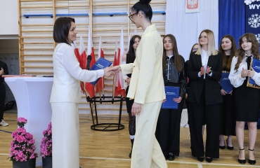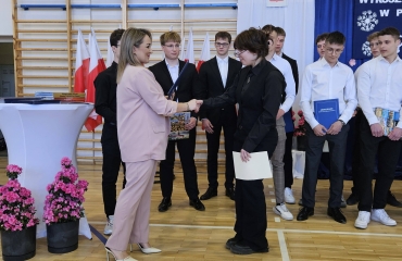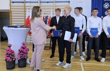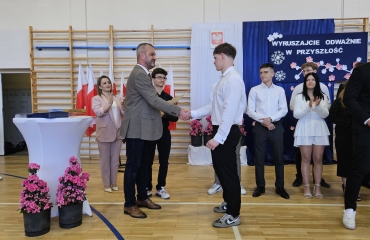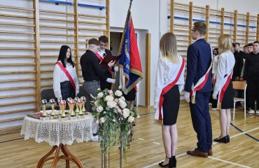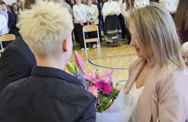 To był wyjątkowy dzień pełen emocji, wzruszeń i dumy. Za nami piękne podsumowania, chwile refleksji nad wspólnie spędzonymi latami oraz serdeczne podziękowania dla nauczycieli i wychowawców. Uroczyście przekazano opiekę nad sztandarem. Nie zabrakło przemówień Dyrektora oraz wychowawców, które przypomniały o drodze, jaką przeszli nasi absolwenci – od pierwszych dni w szkole aż po dzisiejszy moment. Wręczono świadectwa, nagrody książkowe oraz statuetki dla tych, którzy z dumą reprezentowali szkołę w zawodach sportowych. To był czas wspomnień, uśmiechów, ale też łez wzruszenia. Uczniowie klas czwartych podziękowali starszym kolegom składając życzenia oraz wręczając pamiątkowe upominki.