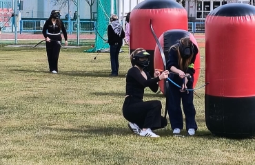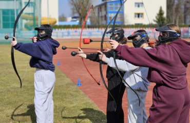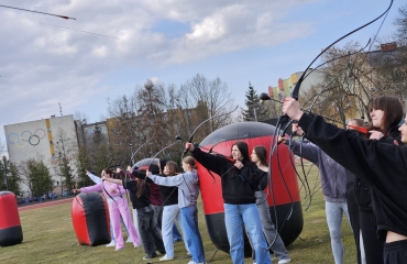 · ,,Strzelanie z łuków (Archering)” - uczniowie kształtowali umiejętność współpracy w zespole, ćwiczyli celność oraz koordynację wzrokowo - ruchową.