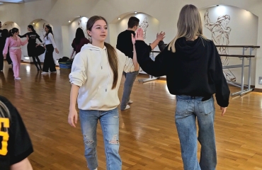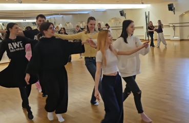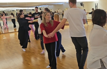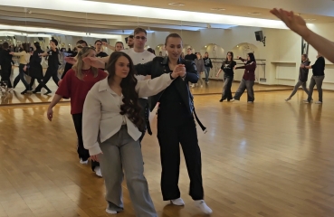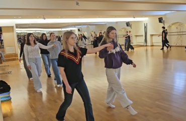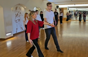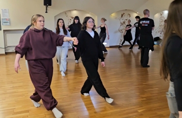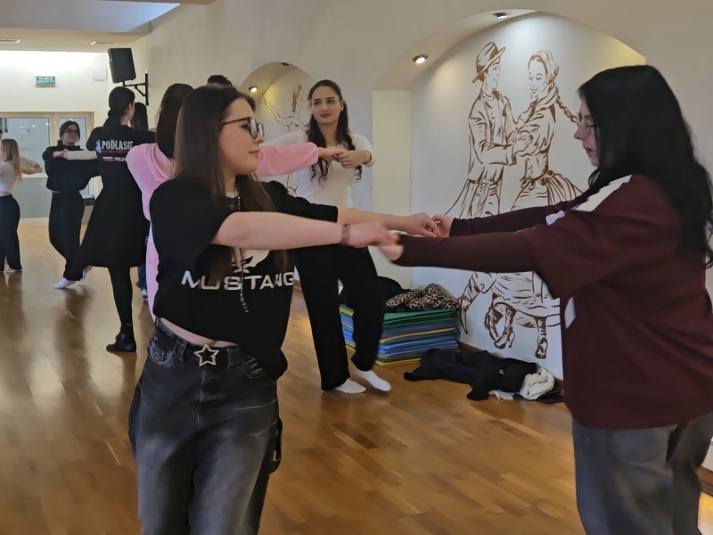 · ,,Jak tańczyć Poloneza - podstawowe kroki i figury” - uczniowie poznali rodzaje tańców narodowych, krok podstawowy oraz wybrane figury taneczne.