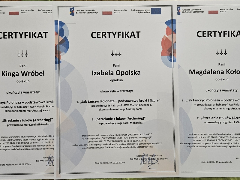 Dnia 23 marca uczniowie naszej szkoły po raz kolejny uczestniczyli w warsztatach edukacyjnych „Akademia bliżej Was!” w ramach projektu „Od startu do mety - graj o dyplom, nie rezygnuj!”. Podczas wizyty na Akademii Wychowania Fizycznego w Białej Podlaskiej odbyły się dwa wyjątkowe zajęcia praktyczne: