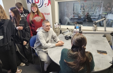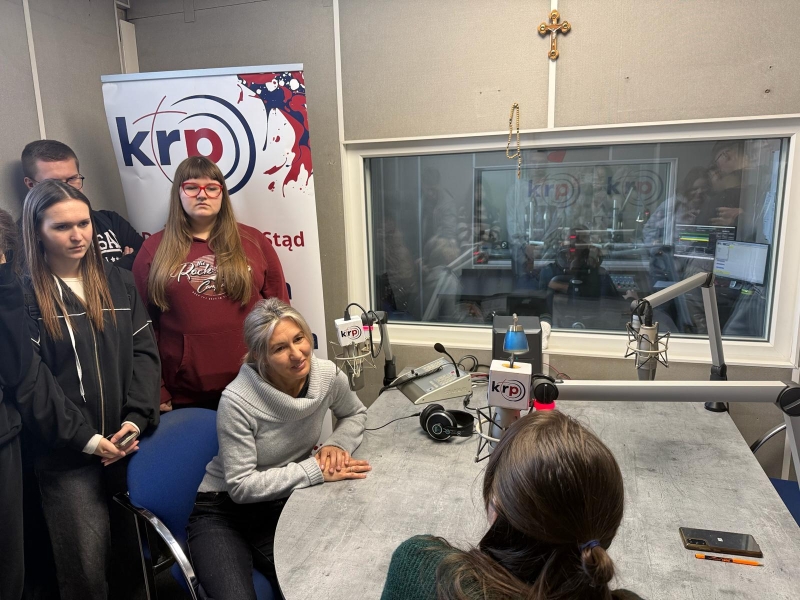 W dniu 24 listopada uczniowie z klasy 4tek, 4tż mieli niezwykłą okazję zajrzeć za kulisy pracy w Katolickim Radiu Podlasie. Podczas wizyty młodzież zobaczyła jak wygląda codzienna praca dziennikarzy, realizatorów oraz osób odpowiedzialnych za tworzenie audycji. Najwięcej emocji wzbudziła próba sił przy mikrofonie – każdy mógł zobaczyć jak to jest udzielać wywiadu oraz spróbować swoich sił jako spiker. Okazało się, że wśród naszych uczniów kryją się talenty i pewne głosy aż proszą się o radiowy debiut! To była inspirująca lekcja, która pozwoliła spojrzeć na media z zupełnie nowej perspektywy.